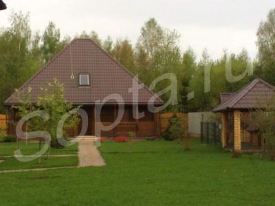Дом стоит у самого леса, в лесу есть спортивная и детская площадки, на территории леса есть пруд. Дом в два этажа площадью 540 кв.м. состоит из 6 спален, 3-х гостиных, две из которых имеют камины. Также на территории есть сауна с бассейном 3 х 6,на втором этаже сауны стоит стол для русского бильярда. Кроме того имеются: теплый гараж на две машины, хозблок с погребом 3 х 10, беседка 7 х 10, теплица, дровитня, вольер для собаки.